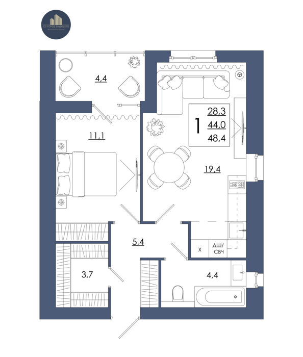 48,4 м2Этаж
